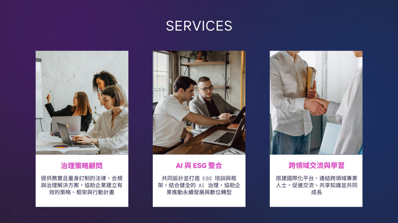 無論是促進董事會層級的對話,提供ESG風險架構建議,還是探索AI治理的未來,我們致力於針對公司治理中日益複雜的挑戰,提供契合需求且具前瞻性的專屬解決方案。